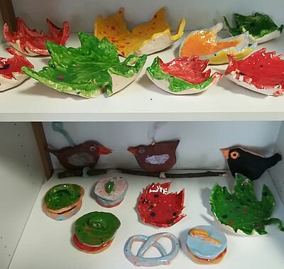 Wunderschön herbstliche Kunstwerke in Ton hat die Kunst-AG hergestellt.
