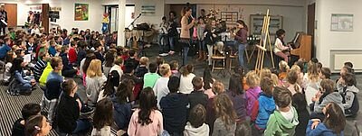 Nach jedem Adventssonntag trifft sich die ganze Schulgemeinde am Weihnachtsbaum, um gemeinsam Weihnachtslieder zu singen. Außerdem gibt es stimmungsvolle Vorträge von den Kindern der Religionsgruppen. Gespannt hören alle zu und erfreuen sich an unserem schönen Weihnachtsritual. |