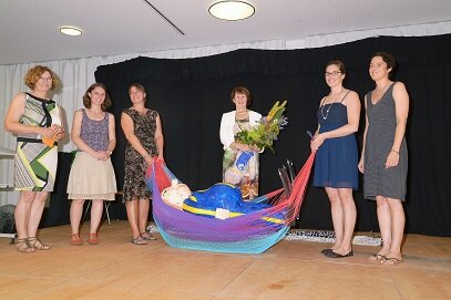 Musikalisch wurde die Feier vom Duo Tarantella (Michael Dragic und Csaba Németh) begleitet. Der Personalrat des Kollegiums trug eine sogenannte "Warme Dusche" vor und verabschiedete ihre Schulleiterin mit einem "Standbild: Sams in der Hängematte" in den wohlverdienten Ruhestand.