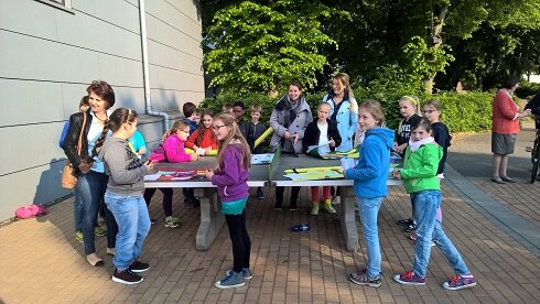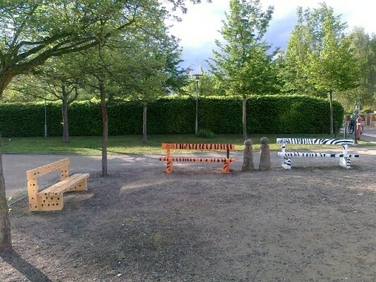Also am 04.05. trafen wir uns um 15.00 Uhr mit den Kindern, und um 16.00 Uhr kamen die Eltern dazu und wir machten vor Ort ein kleines Klassenfest. Die Kinder, die an diesem Tag nicht konnten, strichen die Bänke in der entsprechenden Farbe vor, so konnten die anderen am Freitag die speziellen Muster mit schwarzer Farbe auftragen. Nach dem Motto einfach aber wirksam. Den Kinden hat es viel Spaß gemacht und die Eltern plauschten zusammen. Die Mähne des Zebras mußte wir kurz vor der Entscheidung nocmal richtig befestigen, dann half nur noch hoffen. Die Entscheidung und die Preise gab es am 15.06. am Gotischen Haus, dazu wurden alle Gruppen eingeladen. Es wurden Preise in verschiedene Altersgruppen verteilt, und in der jüngsten Einheit bis 10 Jahre, haben wir "Die kleinen Maler" der Paul-Maar-Schule gewonnen. Wir konnten es kaum Glauben, waren föllig überrascht und freuten uns sehr über den 200,-- Scheck der Stadt für die Klassenkasse. Mal sehen was die Kinder damit machen. Auf jeden Fall war es ein tolles Projekt für die Klasse, auch außerhalb der Schule etwas gemeinsam zu machen, und sogar mit einem tollen Erfolg.
