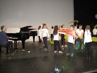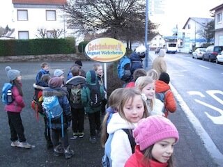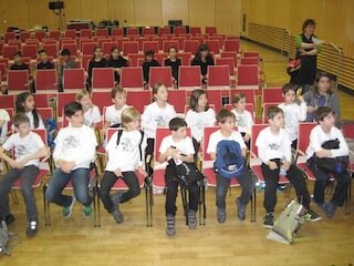 Im November 2011 gab die Stadt Bad Homburg Flyer aus mit der Idee "Bad Homburg sitzt bunt!", mit dem Gedanken, daß verschiedene Gruppen Bänke im Stadtgebiet anmalen, beim Sieg als Preis winkten 200,-- für die Klassenkasse. Ich gab diesen Flyer an Frau Zeits weiter (ehemalige Kunstlehrerin), sie war auch begeistert und meldete die Klasse 4c dazu an. Leider wurde Sie krank und so übenahmen Frau Walter und ich das Projekt. Erstes Treffen war im März 2012 im Stadthaus. Uns wurden Projektmappen übergeben, wir waren die # 19, und nannten uns die kleinen Maler, da wir die jüngste Gruppe waren.